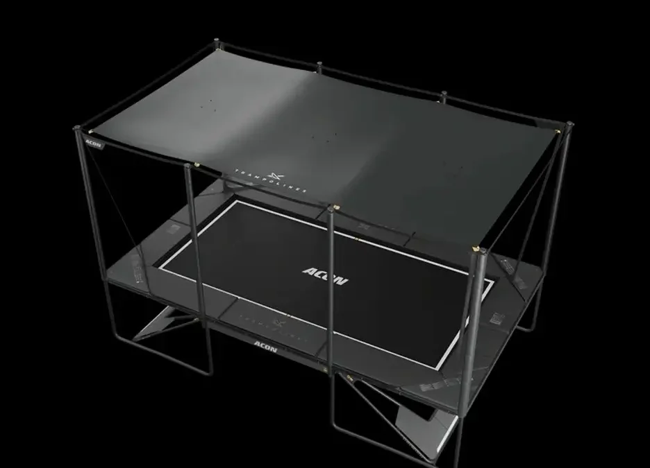 Acon rectangular shade covering over rectangular trampoline - black.