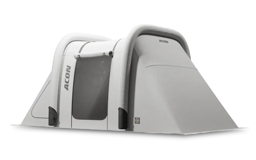Light grey trampoline tent that is rectangular and covers the trampoline.
